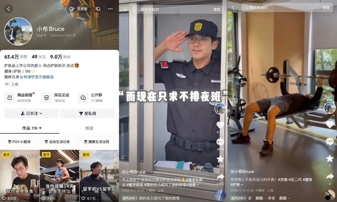 南京印刷厂二代@创驰印刷 峻伟 被称为“印刷业王嘉尔”,曾被网友调侃道:“生意不好没关系,可以嫁给哪家大小姐”。他的账号聚焦“厂二代日常”,涵盖工作vlog(如《95后厂二代的一周》)、穿搭分享(如《一周上班穿搭》)、工厂实拍等,通过生活化场景降低业务距离感。经营钢质门厂的“健硕小吴”,在大号上羞羞答答展示产品,小号上大方展示身材,衣服也越穿越紧,制造“荷尔蒙暴击”效果。