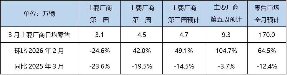 对于3月车市的表现,乘联分会此前发文表示,受春节时间较晚影响,3月上半月仍处于节后消费修复期,市场热度恢复相对缓慢。随着以旧换新补贴细则全面落地、正月结束后消费场景逐步回归,以及春季车展前新车密集上市,3月中下旬汽车市场有望开启季节性回暖。