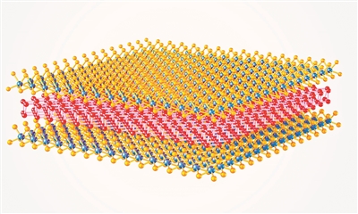 中国科学家研制的二维金属材料之一——单层二硫化钼封装的二维金属铋。图片来源:科学网